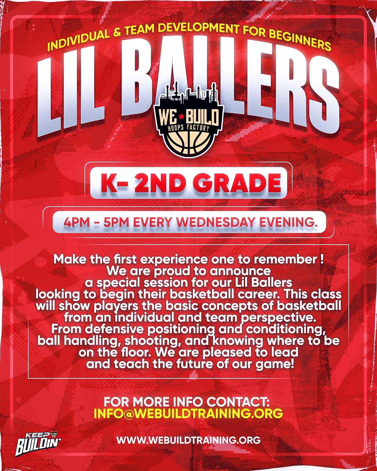 Lil' Ballers Academy is a weekly youth basketball program built to introduce the fundamentals of the game through play — giving kids in K–2nd grade the skills, confidence, and love for basketball that lasts a lifetime.